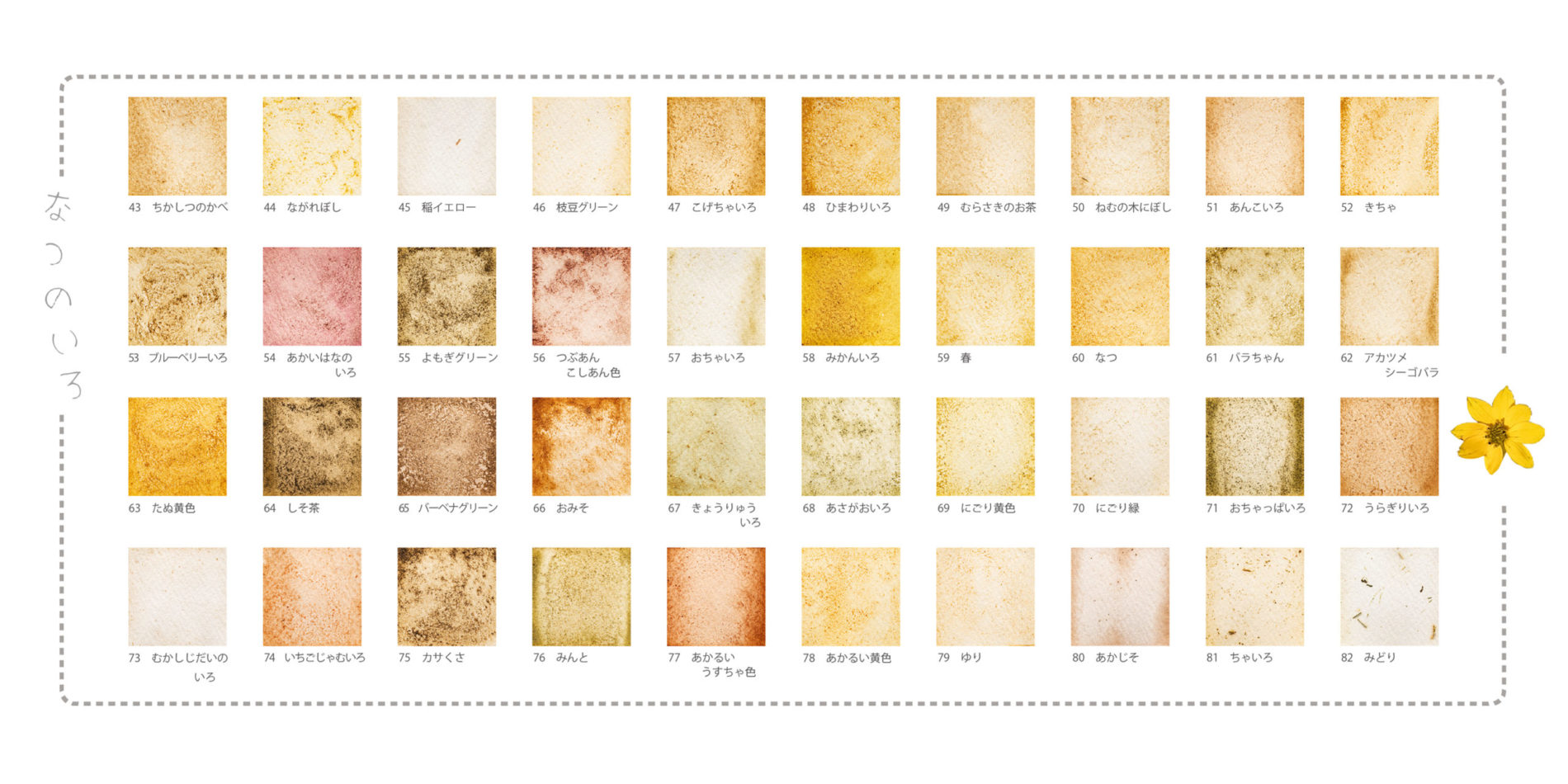 「ちきゅうえのぐ」は、はっぱ、はなびらなど、みのまわりのしぜんのものから つくった えのぐだよ。 「ちきゅうえのぐ こどもけんきゅうじょ」ワークショップで、2021ねん 6がつ から 2022ねん 1がつに、ながのけん さくちいきの こどもたちが つくった、130の「ちきゅうえのぐ」を しょうかいするよ。 ①みのまわりには、どんな いろが ある?いろを さがそう! ②みつけた いろに、 じぶんだけの いろの なまえを つけよう! どんな なまえが ピッタリ? たのしく じゆうに かんがえてみてね。 ③「オリジナル いろの なまえずかん」を つくっても たのしいよ♪ ちきゅうえのぐを つくった こどもたち はるのいろ:レノン、塚田泉舞・玄獅、宮﨑玄、くったん、みずりっくん、みのり、荻原正喜、荻原武尊、はるな、千、苺、ぶりぶりざえもん、けいすけ、アサヒ、はるか、たかひろ、知優希、実結希、すみれ、土屋朝陽、土屋茜寧なつのいろ:かほち、H・H、こっちゃん、ノゾミ三世、もち、あみみずかん、∞ももこ∞、たけるずかん、谷﨑寛奈、ゆうちゃん、すっとぼけい、こっちゃん、そういちろう、亀大希、クマサン、あやかちゃん、ミライちゃん、ゆあ、しん、せえあきのいろ:アイリーン、ななえ、れおっち、ふじたなつき、しもん、みやざきげん、さとうあみか、りさ、和、りんごふゆのいろ:土屋太一、みやざきはるま、トミー、NRマン、仲内涼乃、ツチヤジュミー、LISA、せいちゃん、他6名 前 次 ちきゅうえのぐ こども研究所〇主催: こどもヘンテコまほうラボなおやマン、しま:アイ軽井沢町長倉1533−92022年3月発行 〇ちきゅうえのぐロゴデザイン: 江村康子〇カラーパレット編集制作 : ソネリエ〇W E B編集制作 : あす+ 〇長野県地域発元気づくり支援金活用事業(令和3年度)さくちいき ちきゅうえのぐ こどもミュージアム