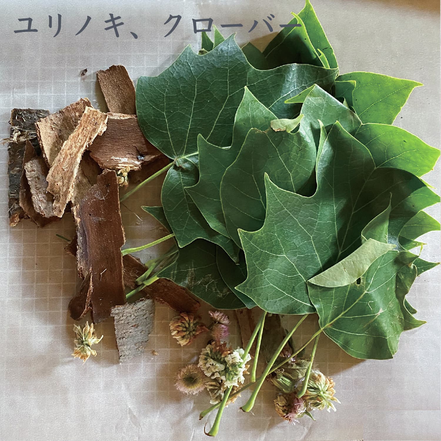 ざいりょうの なまえ: ユリノキ、クローバー