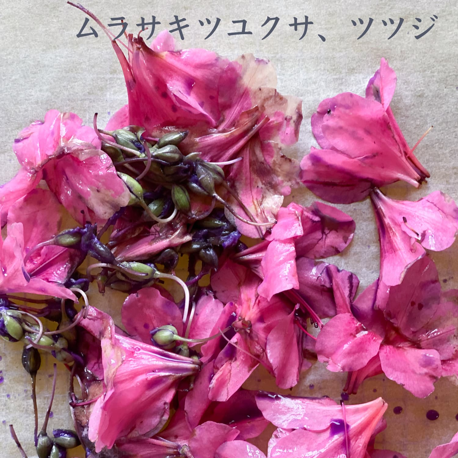 ざいりょうの なまえ: ムラサキツユクサ、ツツジ